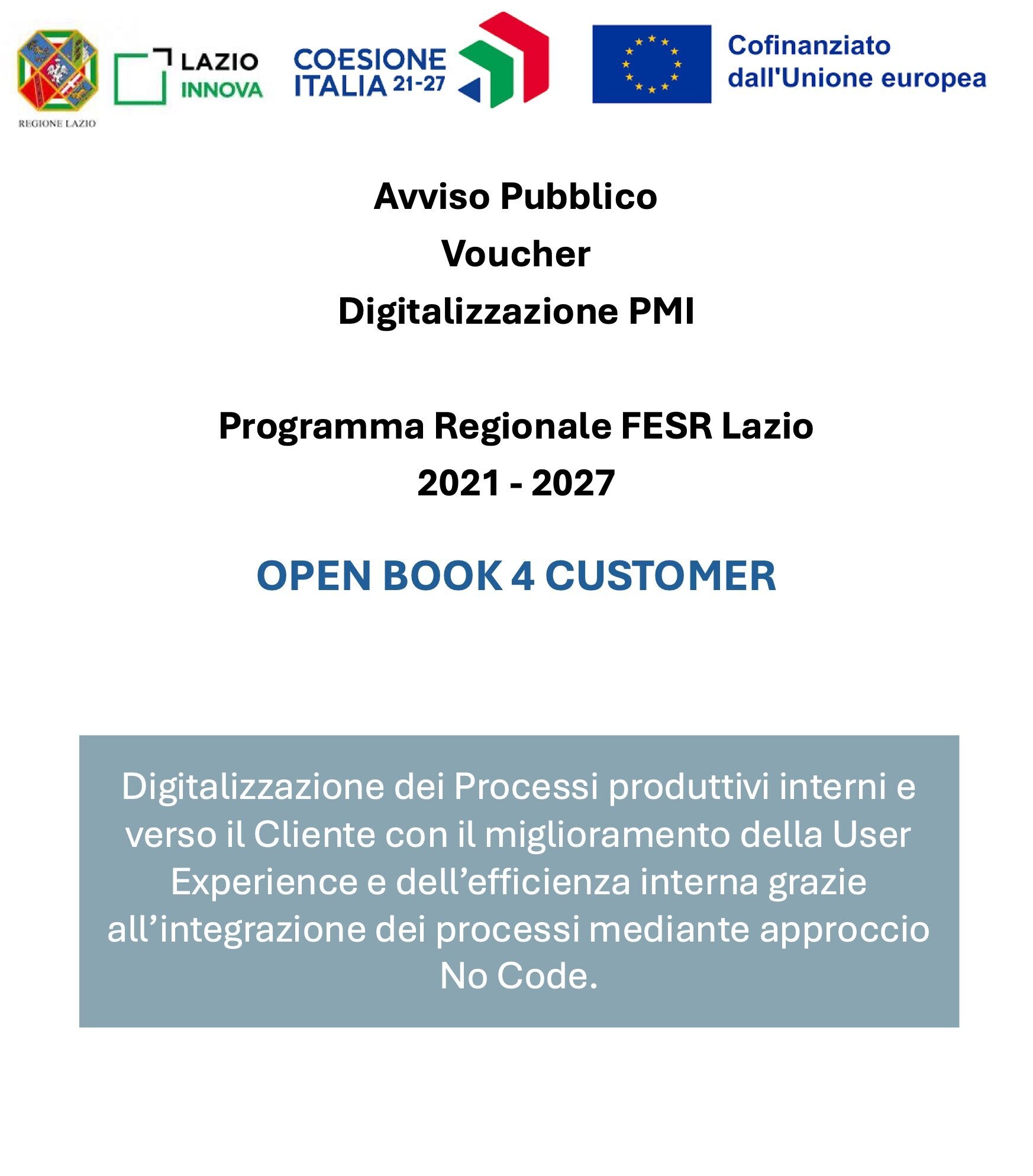 Quando un’azienda analizza criticamente i propri processi interni, il Cliente è il primo a beneficiarne. Grazie al Voucher per la Digitalizzazione di Lazio Innova abbiamo deciso di creare un Gemello Digitale che integra e virtualizza tutti i processi interni di Riges, a partire dal primo contatto con il Cliente.